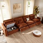 157" Modern Oversized Power Reclining Sofa with Pet-Friendly Velvet, 3 Recliners, 90°-145° Zero Gravity Recline, Storage, USB Charging, Adjustable Headrest, Oversized Pillow Back, Solid Wood Construction, Wall-Hugging, Waterproof & Scratch-Resistant Fabric, Brown
