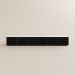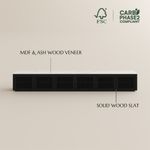 118" Modern Minimalist Wood TV Stand with Glossy Sintered Stone Tabletop, Slatted Entertainment Center, Black TV Console, Perfect for 100-inch TVs