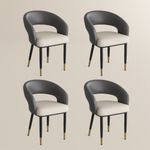 Modern Upholstered Dining Chairs Set of 4, Barrel Chairs with Open Back, Faux Leather Dining Chairs, Gray & Beige