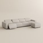 138.82'' Power Electric Recliner Sofa with Ottoman, 2 Extendable Recliners, Eco-friendly Leather, Adjustable Headrest, USB Charging Port, Living Room, Beige
