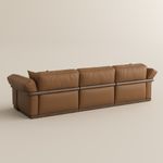 Cronus-Brown Genuine Leather Three-Piece Cushion Modular Sofa with Solid Wood Frame