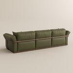 Cronus-Green Genuine Leather Three-Piece Cushion Modular Sofa with Solid Wood Frame