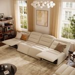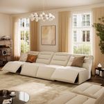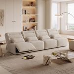 134" Modern Four-Seat Power Reclining Sofa, Grand Zero-Wall Recliner Sofa, No Assembly, Pet-Friendly Fabric, Khaki