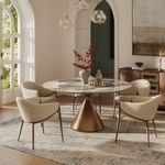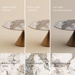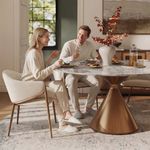 59''Glossy Pandora Sintered Stone table with a brushed bronze conical base