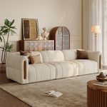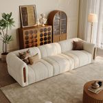117 Inch Modern Boucle Sofa Beige 3-Seat Couch with Solid Wood Details