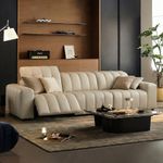 3-4 Seater Beige Full-Grain Leather Power Reclining Sofas