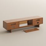 94" Walnut Media Console with Slatted Doors, Ash Veneer TV Sideboard, Remote-Friendly Media Cabinet, Wood Slat Entertainment Center, 85 inch TV Console, Professional Cable Routing, Robot Vacuum Friendly TV Stand