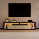 79" Modern Low Profile TV Console with Glass Tabletop, Luxury TV Stand with LED Lights & Storage, Perfect for 75 Inch TVs, Fully Assembled TV Stand
