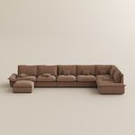 5 Seaters Brown Suede Fabric Modular Sofas