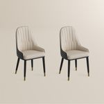 PU Leather Gray & Beige PU Leather Dining Chairs