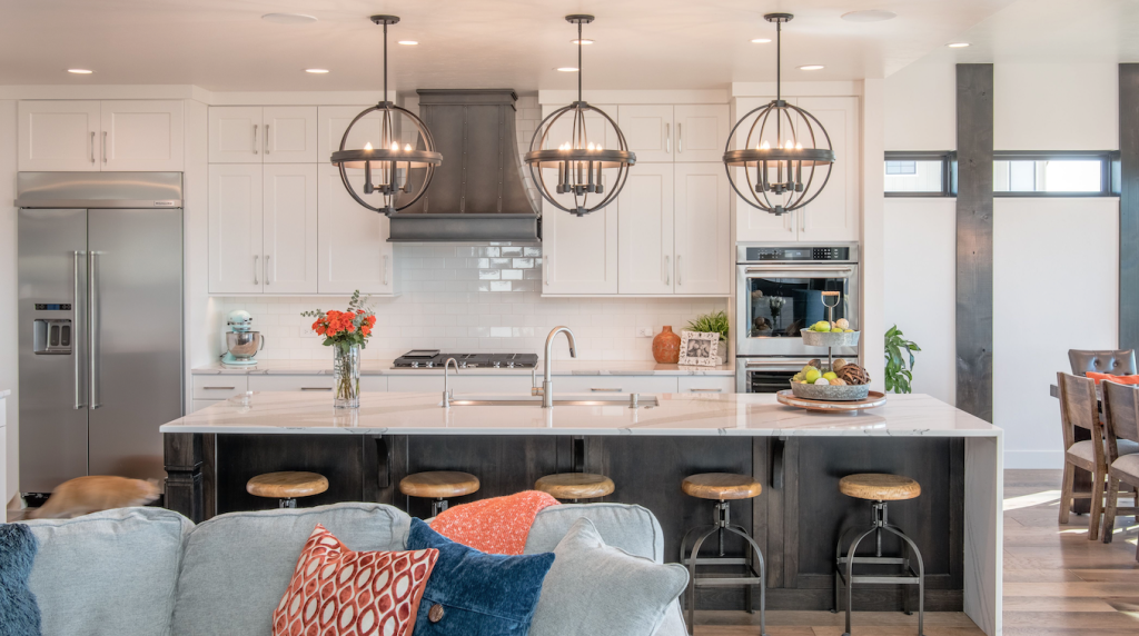 Open sightlines. A high-back stool sitting tall above a kitchen island can block the view from the kitchen into the living room. If you specifically designed your island to feel “open,” tall backs can fight you on that.