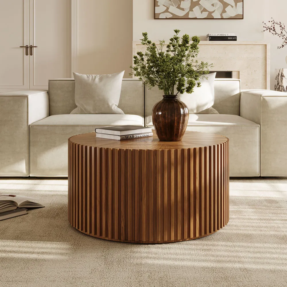 A round coffee table is usually better for small square-ish living rooms (within 30% of equal width and length, like 12×14 or 11×13 feet). Round tables flow better around tight walkways, look visually lighter, and are safer for households with kids or pets. For long, narrow living rooms (length 1.5x or more the width), a rectangular or oval table usually handles the proportions better — round tables can look undersized in long rooms.