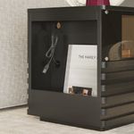 Couldn’t be happier with side table. It shipped quickly after purchase and was delivered by FedEx. The box was badly damaged, but because the packaging was professionally secured, the product was not damaged, not even a scratch. Kudos to whoever designed the packaging. Table is well designed and ready to use — no assembly. The back end is designed to hide chords and power strips.