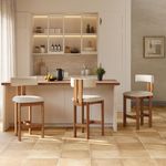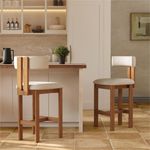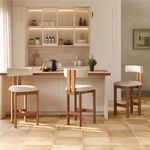 26'' Mid-Century Modern Counter Height Bar Stools Set of 2, Upholstered Bar Stools with Backs, Beige & Light Walnut Faux Leather Counter Stools, Fully Assembled