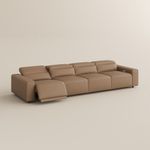 138.82'' Power Modular Couch Electric Recliner Sofa, 2 Extendable Recliners, Eco-friendly Leather, Adjustable Headrest, USB Charging Port, Living Room, Khaki