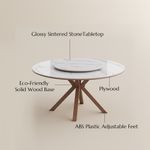 7-Piece Mid-Century Modern Round Dining Table Set for 6 with Lazy Susan, White Sintered Stone Kitchen Table, Easy Clean Dining Table with 6 Upholstered Chairs