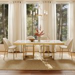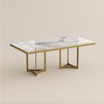 71" Modern Elegance Dining Table for 6, Double Pedestal Kitchen Table, Pandora Glossy Sintered Stone with Gold Stainless Steel Metal Base