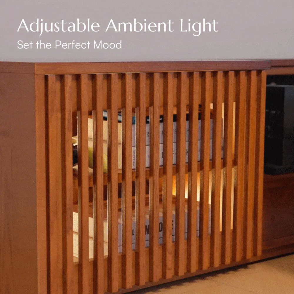 I'm into retro style, and this cabinet's mid-century modern design in walnut is perfect. I have a curious cat. The anti- pinch function is a relief. During movie nights, 5-level LED dimming sets a great mood. Adjustable shelves are handy for pet toys and my media.