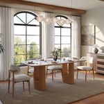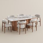 The sintered stone top is extremely easy to maintain. It doesn’t show stains easily, and even after daily use, it still looks clean with just a quick wipe. I really love the solid wood slat detailing on the legs—it adds warmth and texture without looking bulky. The smile-shaped base gives it a unique, sculptural look that stands out from typical dining tables.