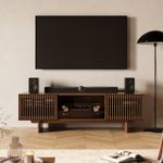 71" Walnut Media Console with Slatted Doors, Ash Veneer TV Sideboard, Remote-Friendly Media Cabinet, Wood Slat Entertainment Center, 70 inch TV Console, Professional Cable Routing, Robot Vacuum Friendly TV Stand