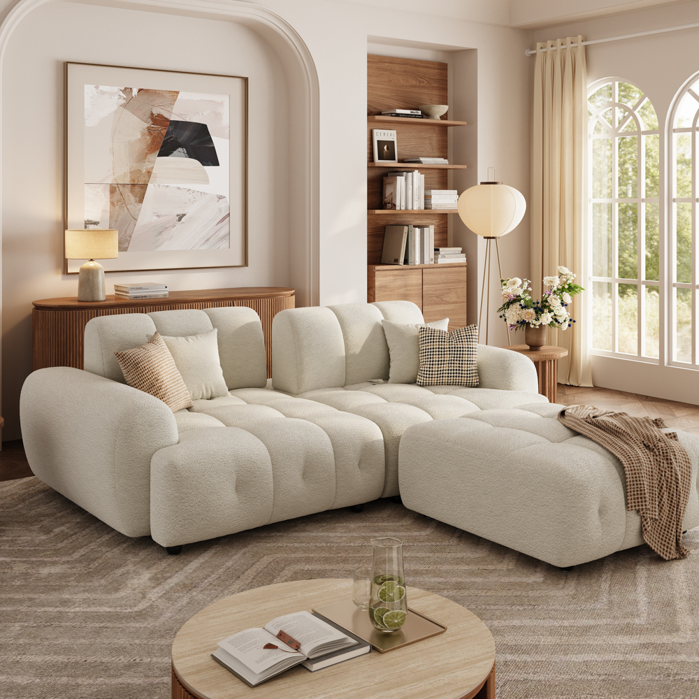 The best cream sofas of 2026 share commitment to practical luxury: stain-resistant performance upholstery, removable machine-washable covers, and deep seat dimensions ideal for lounging. Leading options include the Joybird Carin Sectional with its overstuffed low-slung profile, and feather-filled models with scratch-resistant fabric. Modular designs that grow from a two-piece sofa to a full sectional offer long-term value. Povison's fully assembled cream sofas deliver the popular cloud-couch aesthetic without requiring hours of DIY setup, a significant advantage for buyers seeking immediate comfort. Prioritize models with partially feather-filled cushions for the sink-in feel that defines the category.