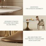 I am absolutely obsessed with this table! The tulip pedestal base gives it such a high-end, mid-century modern vibe. But it’s not just about looks—the sintered stone top is a game changer. I was worried about stains, but it’s so easy to clean; even red wine spills wipe right off. It’s also incredibly scratch-resistant—my cat jumped on it and not a mark left behind!