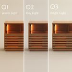 LED Slatted Storage Cabinet, Walnut Storage Credenza