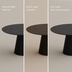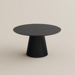 A statement of mid-century craftsmanship. The rich wood tabletop and grooved pedestal highlight a refined interplay of texture, tone, and classic design—crafted to enrich everyday living.