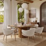 This Dining Room table and chairs set is stunning, very happy with the aesthetic and quality. Shipping took a few weeks but it was well worth the wait! I’d highly recommend purchasing it.
