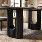 79" Contemporary Oval Dining Table for 6, Scratch-Resistant Glossy White Sintered Stone Top & Black Fluted Pedestal Base, Easy-to-Clean Kitchen Table, Fluted Dining Table, Japandi Dining Table