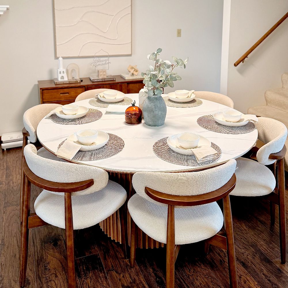Wow! I really like this fluted base. I like the walnut color and shape. The tabletop is made of Sintered Stone, which is easy to clean. In short, I am very satisfied.