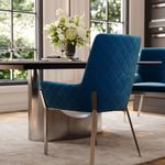 Set of 2 Contemporary Blue Velvet Dining Chairs, Sleek Silver Stainless Steel Frame, Elegant Upholstered Accent Chairs for Dining Room, Cafe, and Boutique Hotel