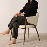 I love how roomy this chair feels. I can actually sit cross-legged comfortably which is rare for dining chairs. The fabric is soft and the bronze legs look really elegant.