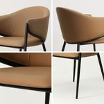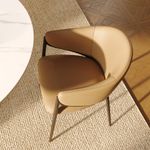 Soft curves flow into a one-piece frame, paired with brown leather upholstery and matte black carbon steel legs.