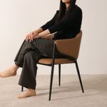 I love how roomy this chair feels. I can actually sit cross-legged comfortably which is rare for dining chairs. The fabric is soft and the bronze legs look really elegant.
