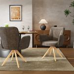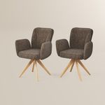 Mid-Century Modern Upholstered Swivel Wood Dining Chairs Set of 2, Fabric Accent Armchairs for Dining & Living Room, Brown