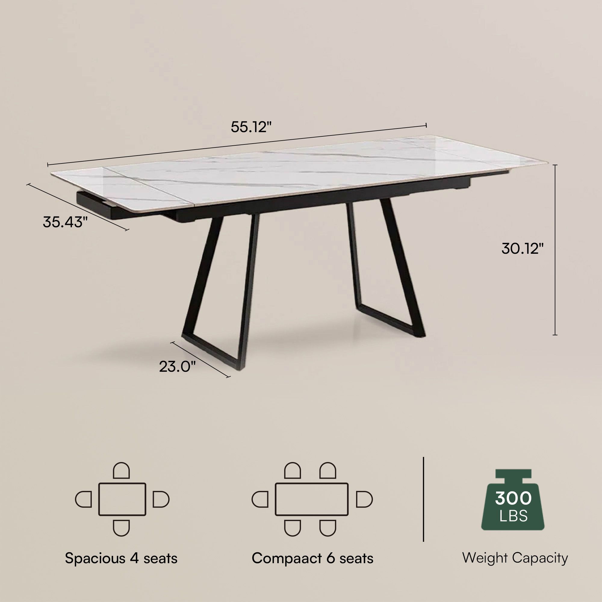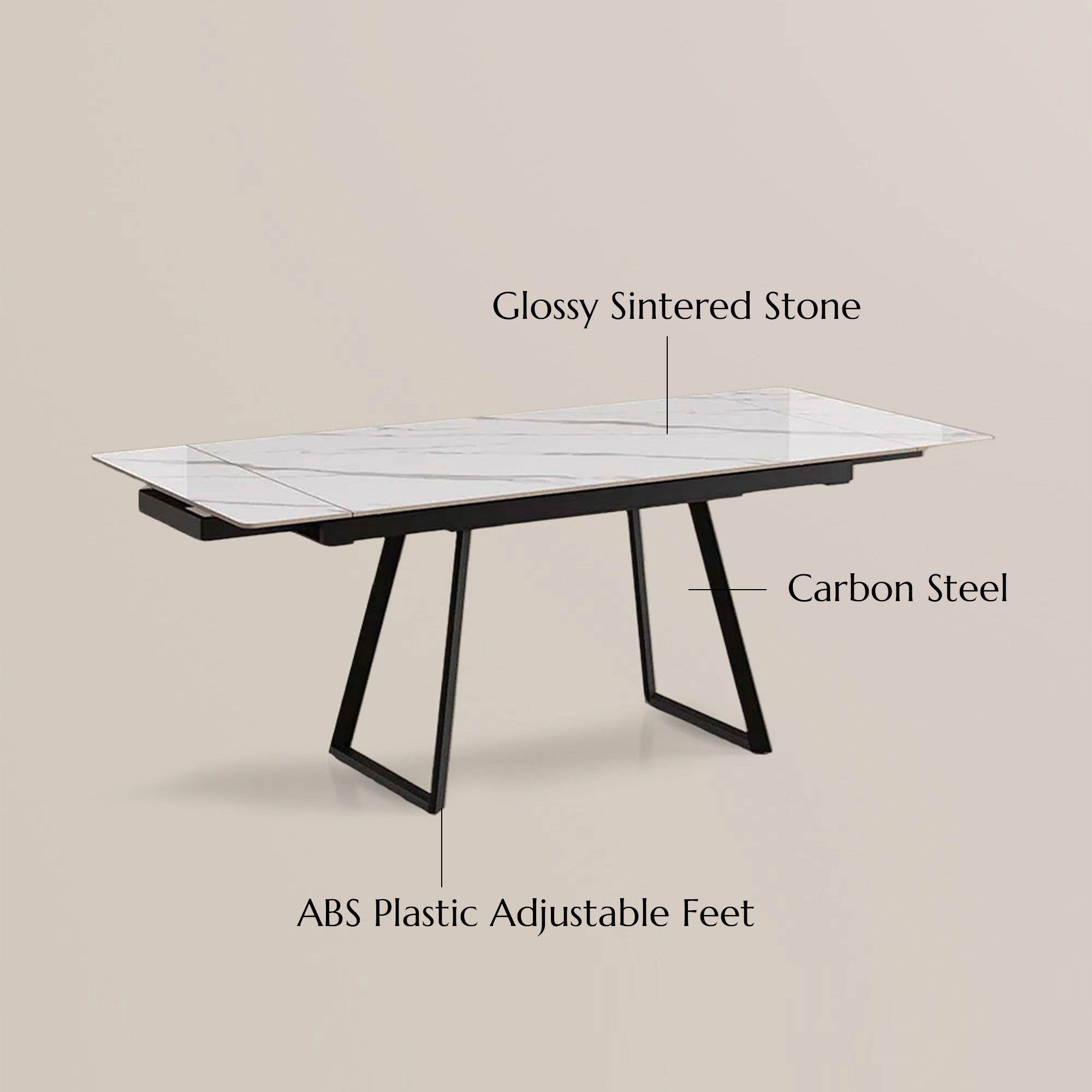 Absolutely love the modern design of this dining table! The glossy white sintered stone is so elegant, and the black carbon steel base is sturdy. Logistics were efficient, and installation was a breeze.