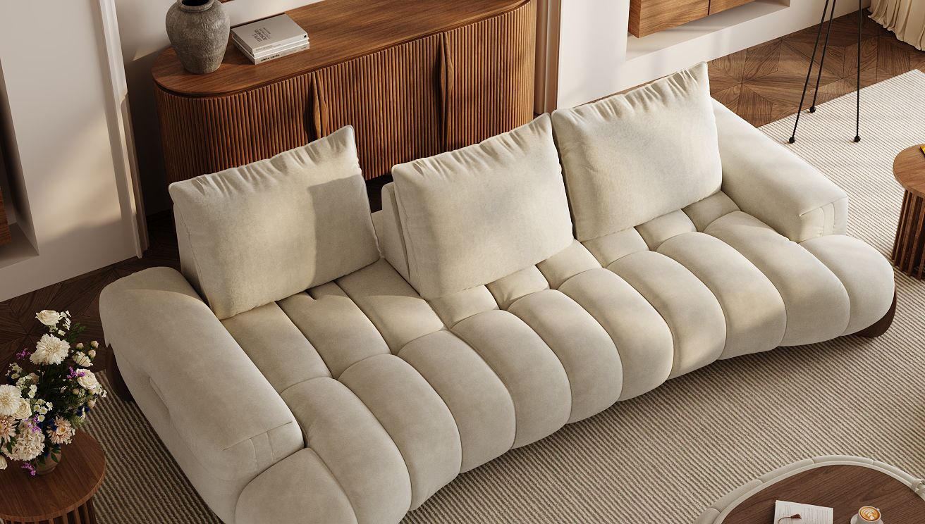 Inspired by a cloud, this cozy and curved sofa offers plush, deep-seat comfort and a modern, stylish aesthetic. Its design creates a lounge-ready,welcoming and luxurious living space