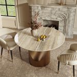 A statement of refined luxury. The 35mm marble tabletop and curved bronze pedestal create a harmonious blend of texture, tone, and timeless design—crafted to inspire elevated living.