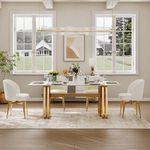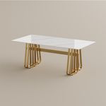71" Modern Luxury Trestle Dining Table for 6, White Sintered Stone Top with Gold Pedestal Base, Easy-to-Clean Rectangular Kitchen Table