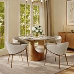 This Dining Room table and chairs set is stunning, very happy with the aesthetic and quality. Shipping took a few weeks but it was well worth the wait! I’d highly recommend purchasing it.