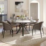 Modern Upholstered Dining Chairs Set of 6, Faux Leather Barrel Chairs, Gray & Light Gray