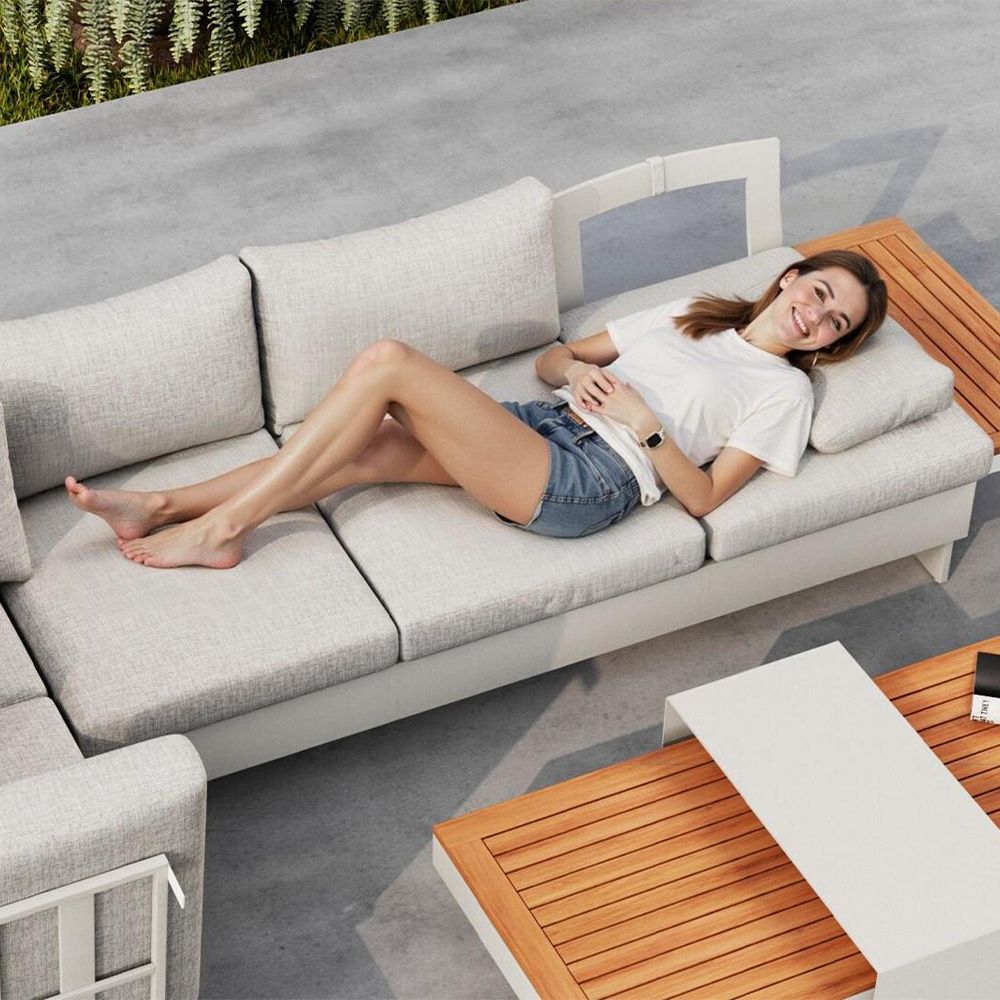 Modern 3 Seater Outdoor Sectional Sofa with Recliner and Side Table