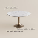 This was my first purchase from this brand, and I’ll admit I was nervous about whether the tabletop and gold pedestal base would look as high-end as the photos. When the table arrived, I was blown away by the quality—the pedestal is incredibly heavy and provides rock-solid stability with zero wobbling. Assembly was a breeze; I just had to bolt the heavy-duty base to the top, and it was ready for dinner. The legroom is amazing thanks to the pedestal design. It’s a perfect match for my velvet chairs. I would definitely buy from them again for their solid products and great support!