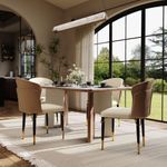 63" Rectangular Dining Table for 4, Engineered Stone Dining Table for Kitchen, Stainless Steel Base