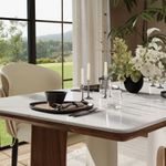 Partly Assemble White & Walnut Engineered Stone Dining Tables
