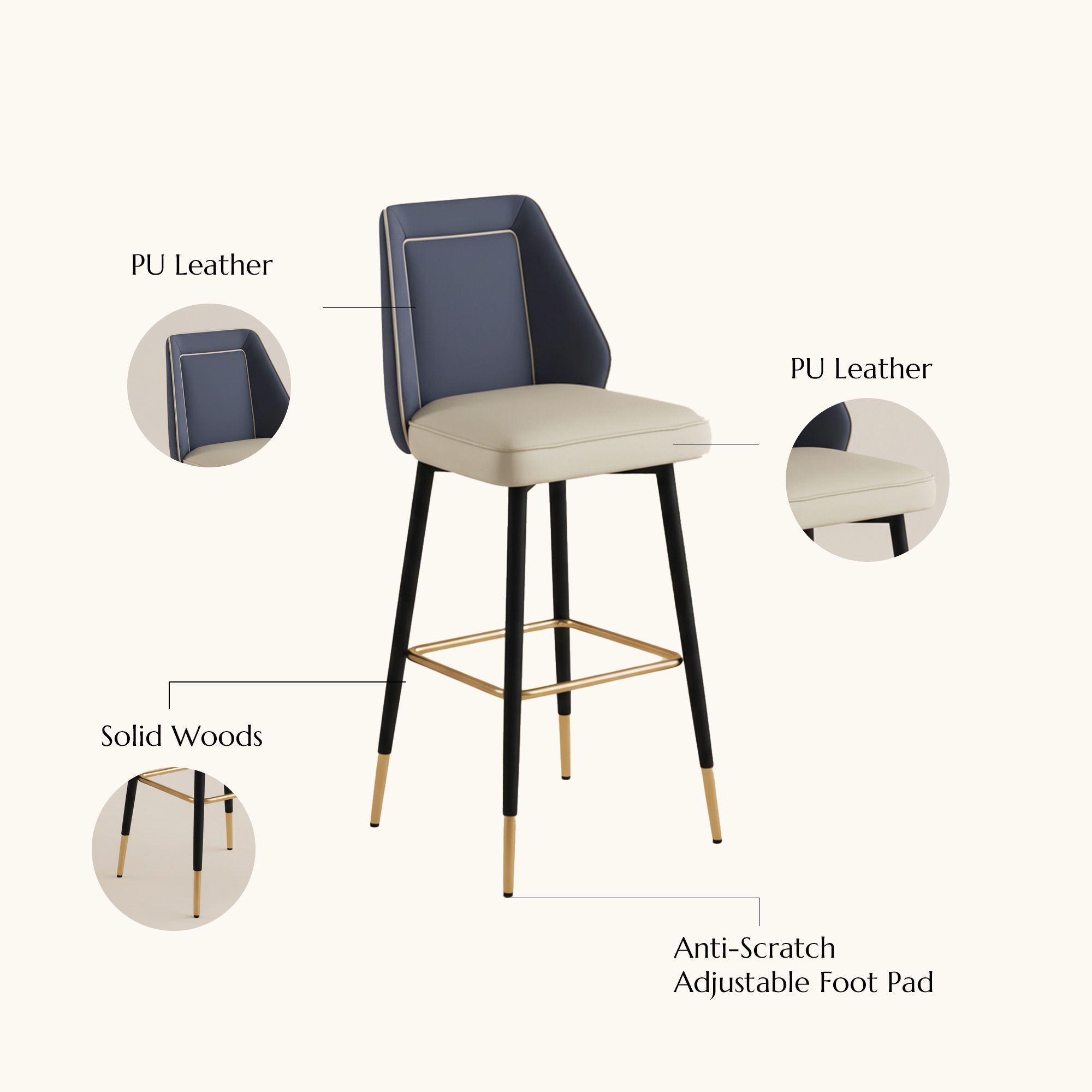The orange color of the stool adds a vibrant touch to our otherwise plain kitchen. The PU leather feels durable and comfortable. Installation was mostly smooth, except one stool gave me a bit of trouble aligning its components. Still, it’s holding up nicely, and I receive compliments from guests often!
