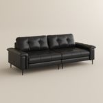 245'' Mid-Century Modern Black Leather Sofa, Hand-Tufted Couch with Curved Armrests, Carbon Steel Legs, Faux Leather, Black