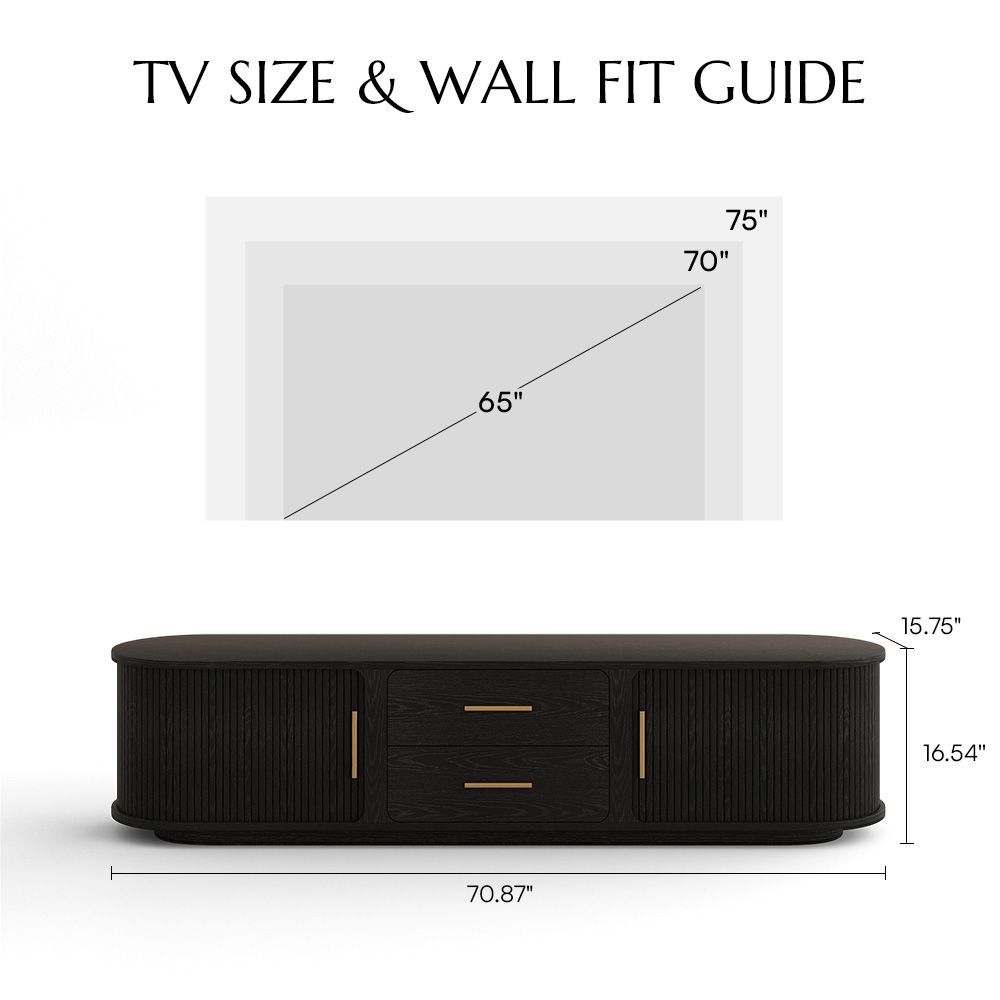 I like this TV cabinet very much. I bought a 78-inch TV cabinet, which matches the mid-century style of my entire living room. The material of the TV cabinet is very strong, and it has a high-quality feel and appearance. This is already the second time I have ordered from Povison and it went very smoothly. The box came well packaged and all we needed to do was install the feet. Very easy and highly recommended!