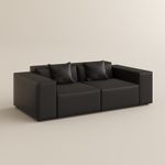 Square Black Leather Modular Sofas